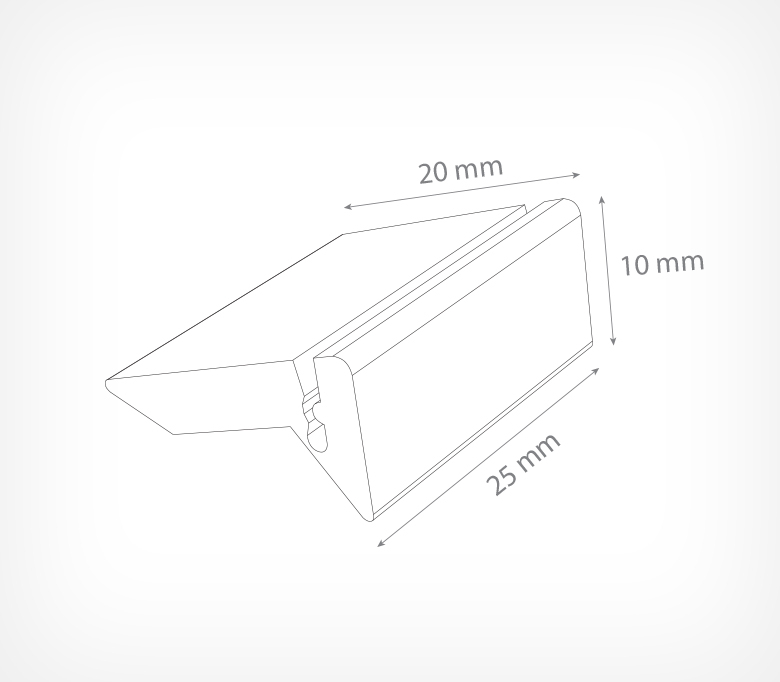 Миниатюрный ценникодержатель, позволяет разместить бумажный, картонный ценник или небольшую табличку толщиной до 1.0 мм., под небольшим наклоном. Бюджетное решение для обозначения стоимости продукции.