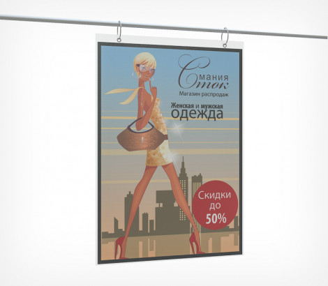 Металлическое кольцо для подвешивания постеров, рамок и других рекламных материалов.