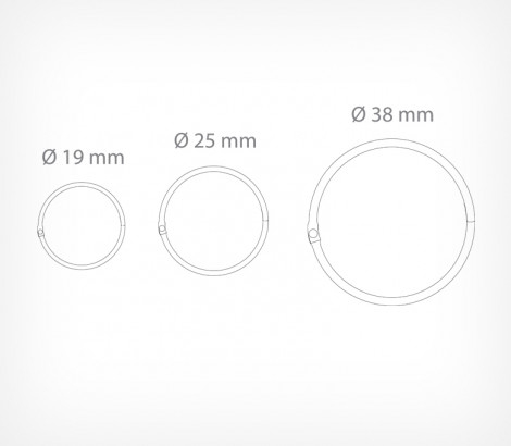 Металлическое кольцо M-RING предназначено для подвешивания постеров, рамок и других рекламных материалов. M-RING-19 (диаметр 19 мм) M-RING-25 (диаметр 25 мм) M-RING-38 (диаметр 38 мм) Также металлическое кольцо M-RING может использоваться для соединения элементов подвесных рекламных конструкций и сшивания листовых материалов в полиграфической сфере
