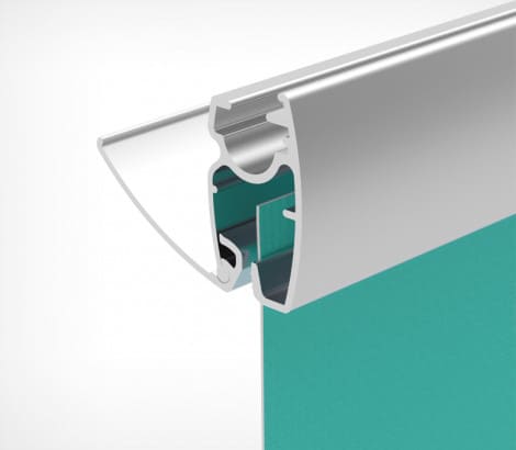 Профиль использует принцип «закусывания» вставляемого материала. Конструкция профиля из 2-х частей без использования пружин обеспечивает надежное крепление рекламных плакатов из баннерной ткани. В комплект входят 2 профиля с пластиковыми заглушками, один из профилей оснащен 2мя пластиковыми крючками.