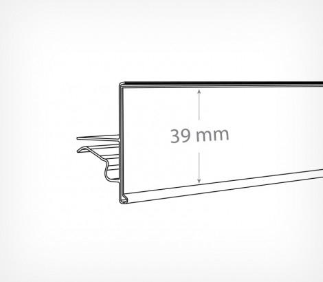 Ценникодержатель в холодильную витрину СС-39 дл.520 мм прозрачный — предназначен для полок с торцом из двух прутов, чаще всего применяется в вертикальном холодильном оборудовании. Имеет смещённый в нижнюю часть профиля фиксатор для сокращения занимаемого пространства выкладки уровнем ниже и более лёгкого вынимания товара, верхняя часть профиля выступает ограничителем для товара.