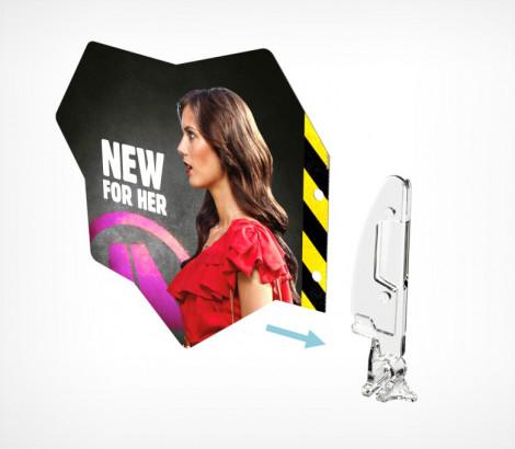 Крепится на полку при помощи профиля PRO30 или T-RAIL. Позволяет разместить стоппер на полке и дополнительно выделить продукт, представить информацию об акции. Для крепления в стоппере необходимо сделать дополнительно отверстия. Толщина вставки от 0,1 до 0,7 мм