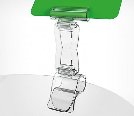 Компонент Дели-системы, держатель соединительный, используется в комбинации с подставкой или с держателем для посуды как соединитель с изменяющимся углом наклона ценника. Позволяет регулировать угол наклона и высоту ценника.