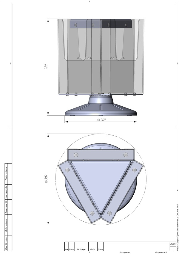 Буклетница настольная трехсекционная А-4 вращающаяся платформа. Каждый из 3-х секций-кармана закреплен на основании из литьевого полистирола и вращается по часовой и против часовой стрелки.