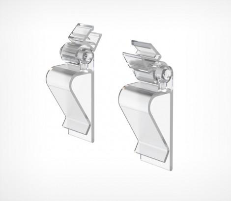 Универсальная клипса-держатель пластиковой рамки с регулируемым углом наклона. Крепится на край коробки или другой тары, полки толщиной до 20 мм. Обеспечивает дискретную регулировку угла наклона рамки в диапазоне 180˚.