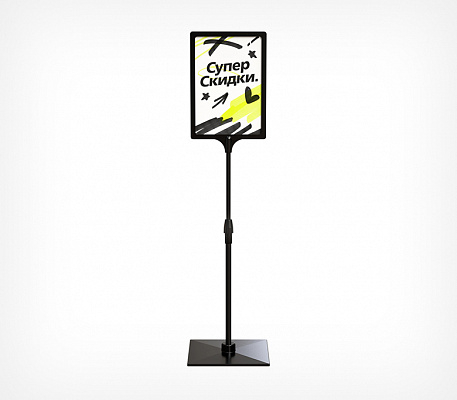 Подставка пластиковая «Квадрат» для размещения напольных и настольных информационных стоек на телескопических трубках, рамок форматов А-4 и А5 в местах продаж. Применяется с трубками Ø 12 мм, длиной до 550 мм.