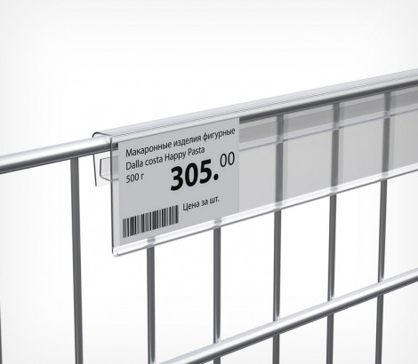 Ценникодержатель на корзины из метал. прутьев KEL-39 дл.1000 мм прозрачный