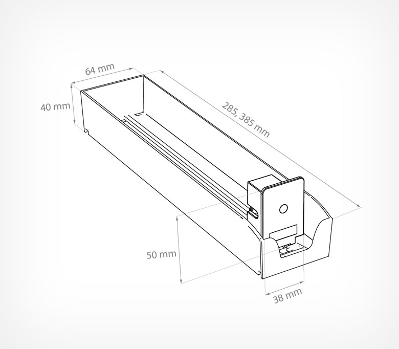 Сигаретные лотки очень просты в применении - нет необходимости выставлять нужную ширину между стенками и крепить толкатель.  Достаточно просто защёлкнуть лоток на крепёжных профилях, и им можно пользоваться! Подойдёт для любой продукции, сходной по габаритам с пачкой сигарет.