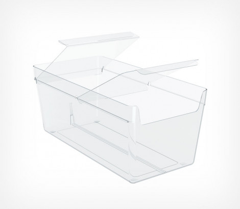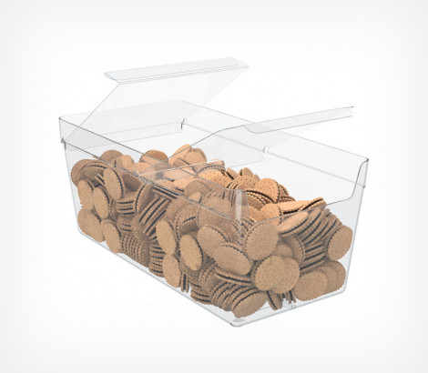 Универсальный накопитель для выкладки сыпучих или мелких товаров , с крышкой. Оптимальное решение для магазинов формата супермаркет с продажей весовых продуктов, аптек и косметических магазинов и других магазинов, сталкивающихся с выкладкой мелких товаров. Легкая очистка благодаря закругленным углам.
